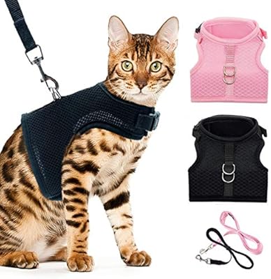 Pupteck Cat Harness And Leash 2 Pack Adjustable Escape Proof Pet Mesh Walking Jacket For Puppy Kitty Pink Black Large Amazon Com Au Pet Supplies